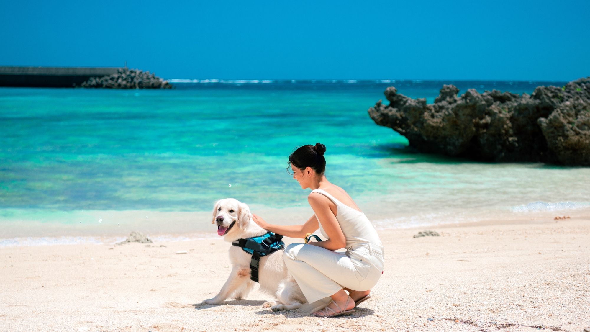 沖縄宮古島の海を眺めながら優雅な時間を堪能できるリゾートホテル「ホテルシギラミラージュ」 。プライベートプール付きヴィラスイートの贅沢な客室で、愛犬と一緒に寛げる。リゾート内にはペット同伴OK(テラス席)のレストランも併設されている。